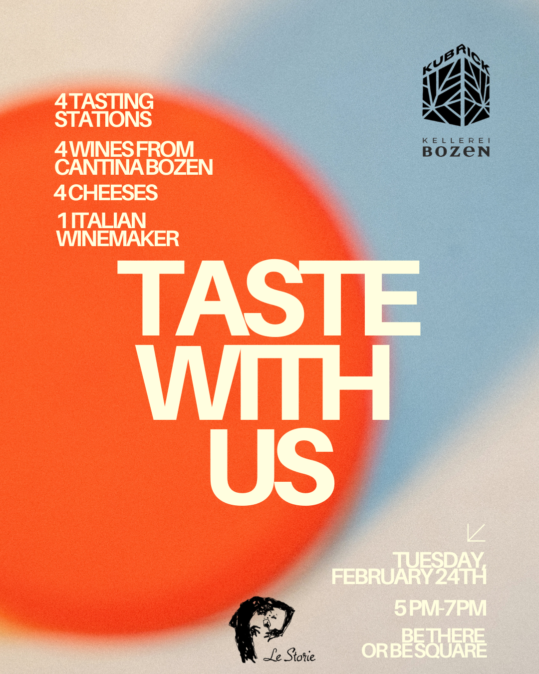 Taste with us... and one of our favorite northern Italian winemakers, Cantina Bozen! Visit four tasting stations and enjoy four cheese and wine pairings. Join us!